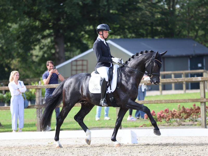 Ook voor de jonge hengst Rossi (Koning x Santano) (foto) stond het debuut gepland. Hij kwam in actie in de aanlegwedstrijd voor jonge dressuurpaarden, waar hij bij de vierjarigen naar een mooie score van 78 punten liep.