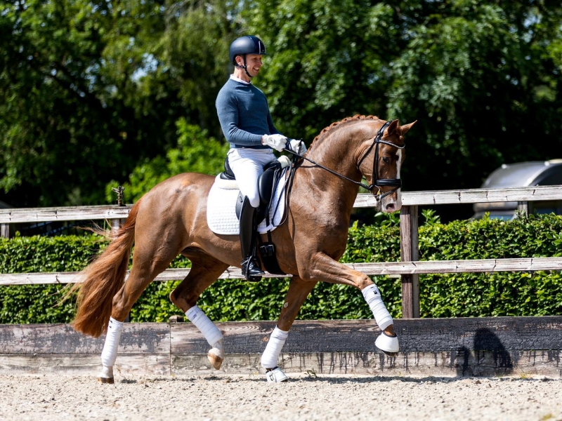 In Varsseveld stond afgelopen vrijdag een kwalificatie van de Subli Competitie op het programma. Met de vijfjarige hengsten Roman Empire (v. Romanov) en Pride (v. Secret) deed Bart goede zaken. In een heel sterk deelnemersveld liep Roman Empire naar een topscore van bijna 89%, met als uitschieters een 9,4 voor zijn draf en zelfs een 9,7 voor de geschiktheid als dressuurpaard. Het leverde hem de mooie tweede positie op.